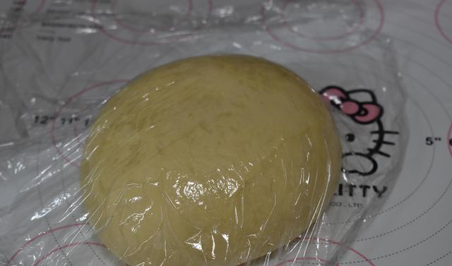 3 把搅拌好的面团滚圆放在容器里,用保鲜膜覆盖着,放在室温下进行基础发酵。