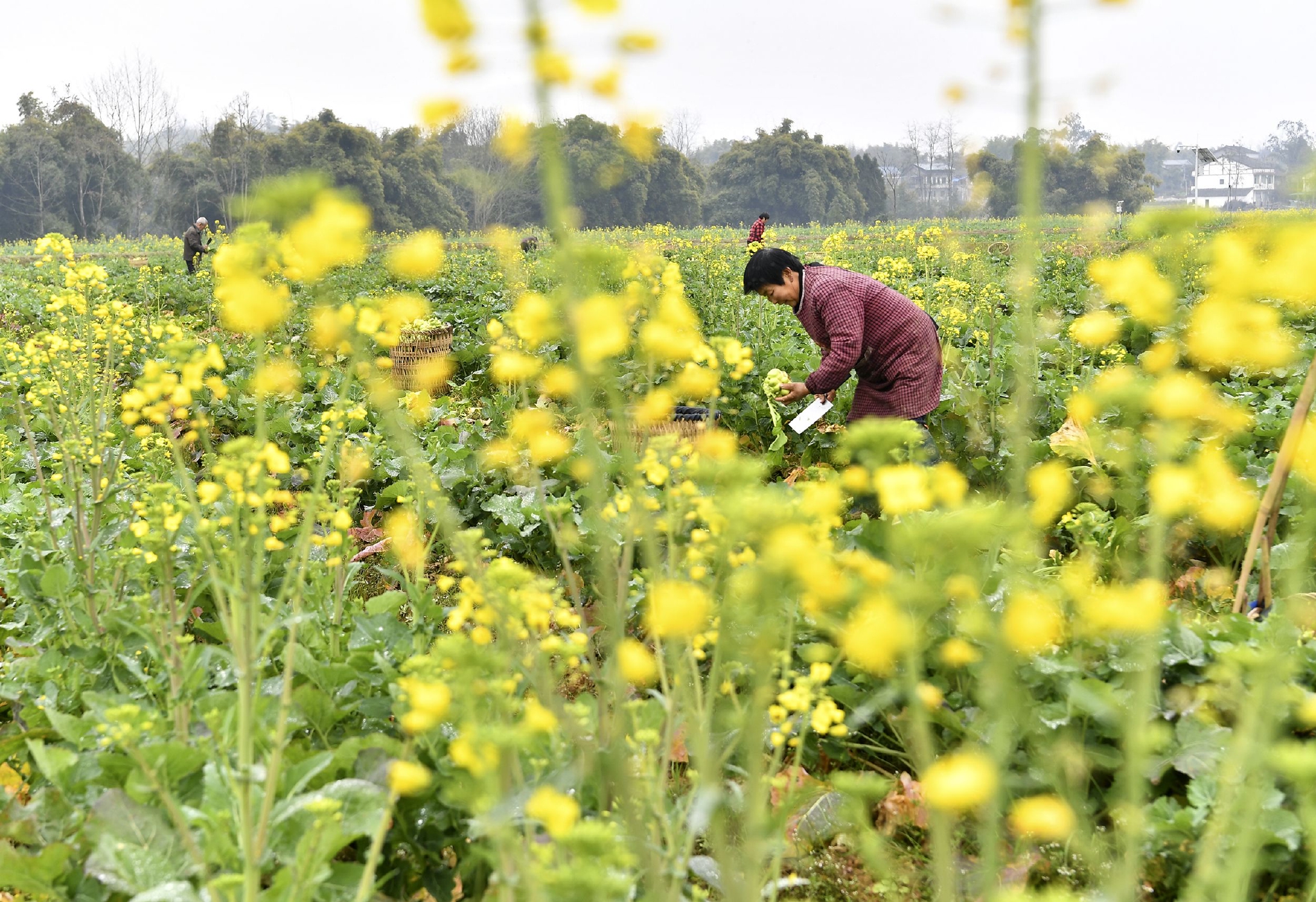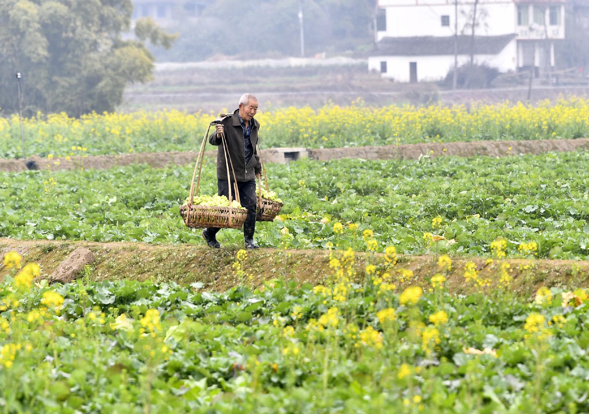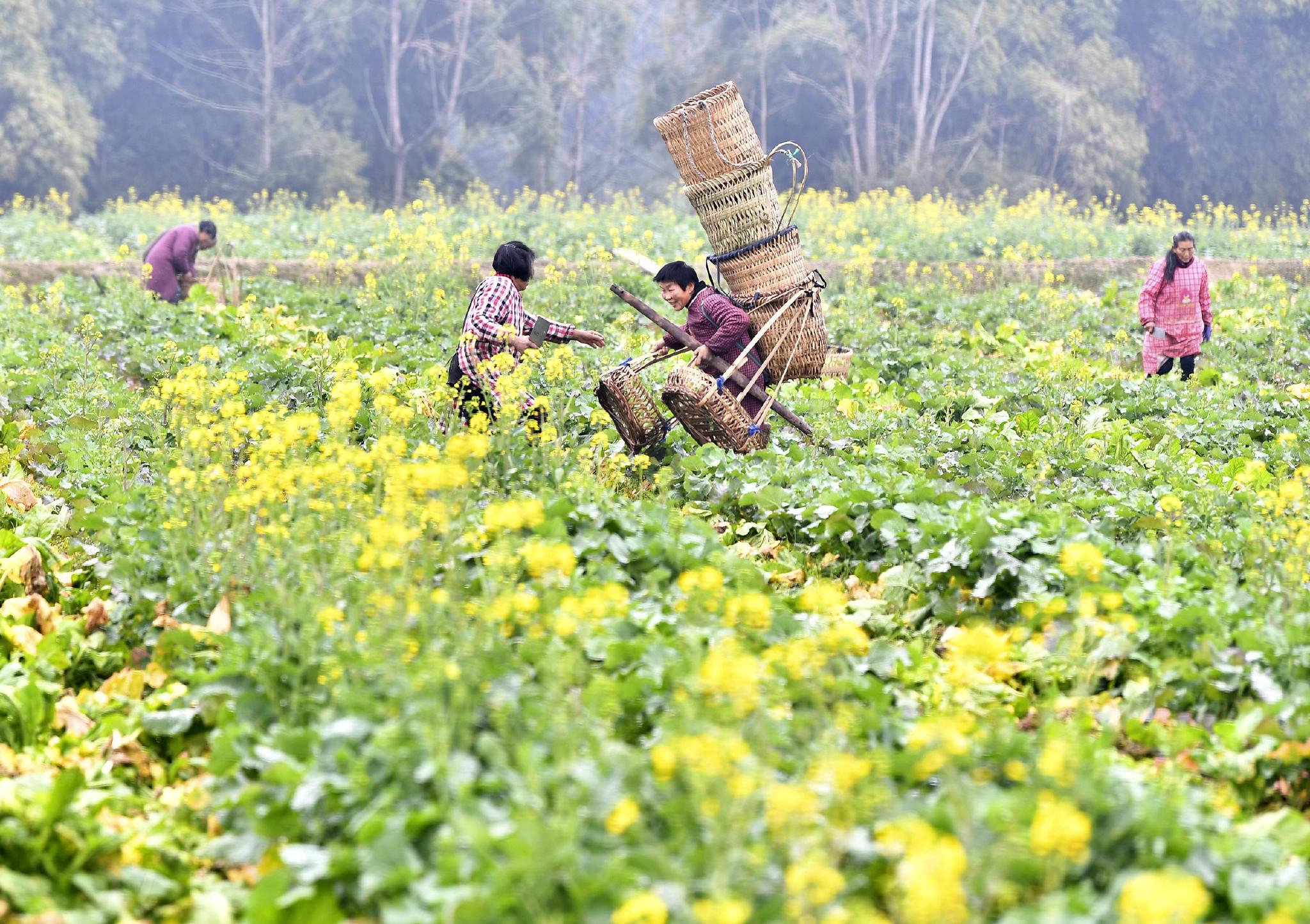 2月9日,四川省广安市广安区花桥镇竹林村的农民转运青菜头。 新华社发(张启富 摄) 2月9日,四川省广安市广安区花桥镇竹林村的农民在油菜地里砍收套种的青菜头。 新华社发(张启富 摄)