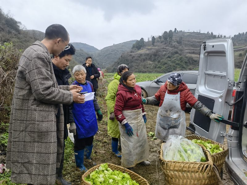 村民正在将已采摘好的儿菜装运。