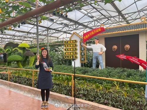 “我正在菜博会八号馆给大家直播,现在大家看到的画面就是展馆南区的景观‘希望的田野’,景点围绕乡村产业、人才、文化、生态、组织‘五个振兴’构思制作,如果你们想了解这里的更多情况,可以发送留言,我边看边讲。”侯镇宏源工作人员张润正在进行抖音直播,她在镜头前解说着馆内的情况,并不时向网友推荐寿光的蔬菜、白酒等产品。