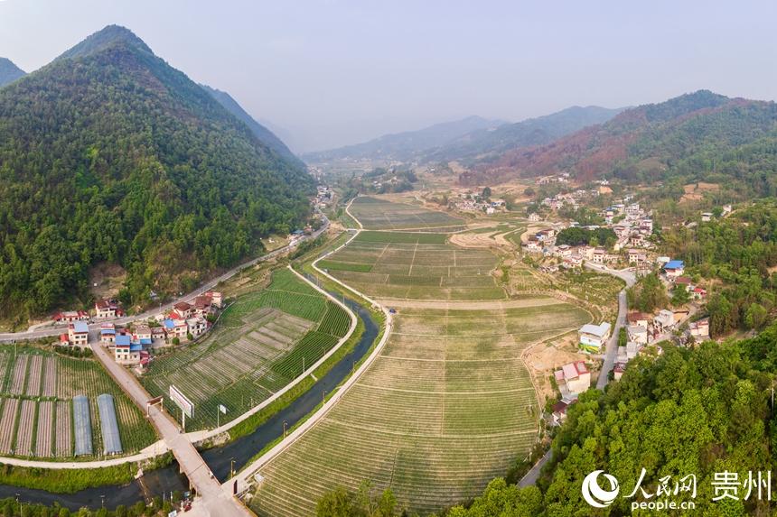 航拍贵州黔南州罗甸县逢亭镇祥脚村1500亩标准化蔬菜种植基地。人民网记者 涂敏摄