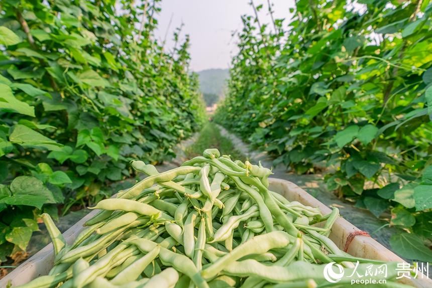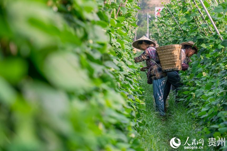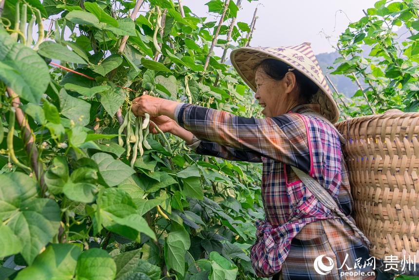 村民正在采摘成熟的四季豆。人民网记者 涂敏摄