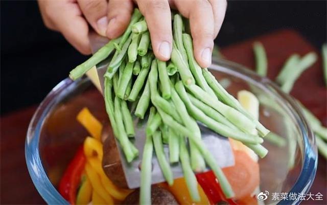 5.又准备了一些彩椒,香菇,最后放一些豆角。
