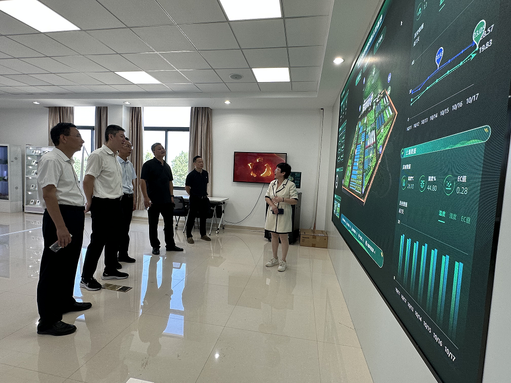 随后,陈虔副厅长一行实地考察茄子、苦瓜等种质资源圃的建设情况,参观市菜科所智能温室、数字展示厅、实验室,详细了解蔬菜育种创新示范平台运行情况。