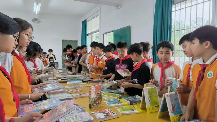 仪式结束后还举行“菜园子书吧”开心采活动,参加活动的学生纷纷到新华书店流动服务点挑选书籍,或仔细翻阅书本内容,或与同学分享阅读想法,或有序排队采购,整个活动现场洋溢着浓厚的书香氛围。