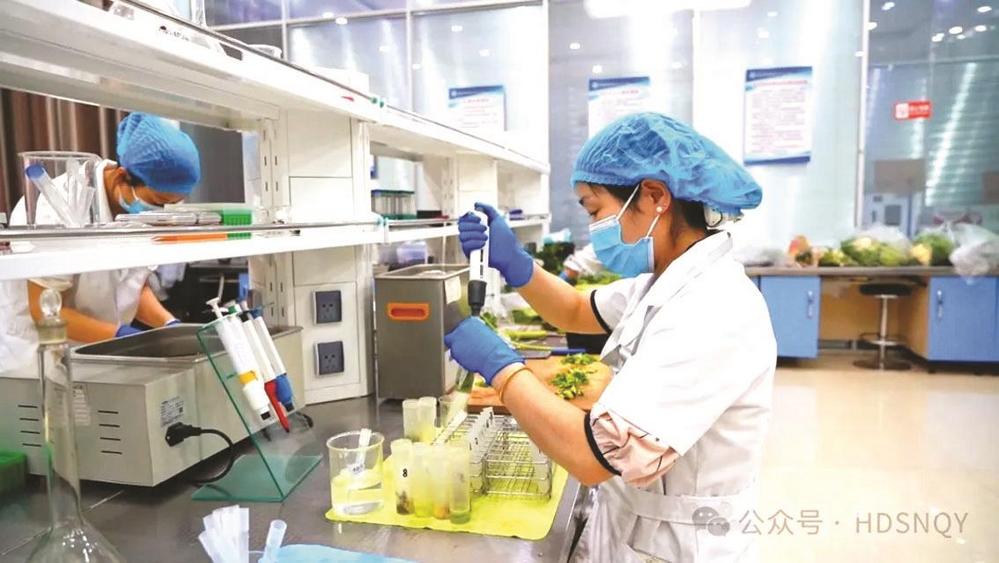 作为全国设施一流、功能完备的综合性农产品批发市场,南大堡蔬菜批发市场始终将农产品安全放在首位,对进入市场的每一批蔬菜,检测中心都会开展快速抽检。走进市场检验检测中心,留样室内整齐摆放着当日取样的各类蔬菜,检测员专注操作着先进检测设备,对农产品进行全面、精准的检测分析,以严格标准守护入市蔬菜安全防线。