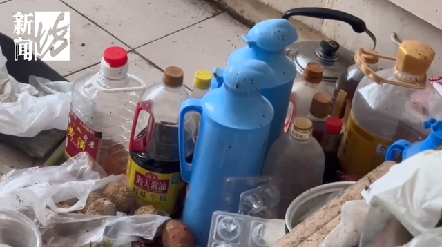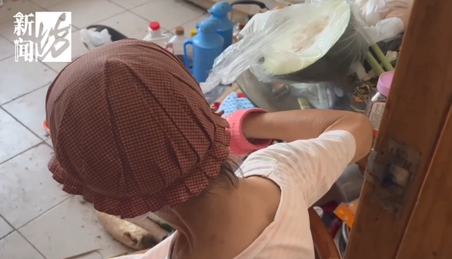 “烂掉的蔬菜,还有剩菜,剩下的菜也不舍得扔。大米里面一大袋都有小的蟑螂卵,我们让她扔掉算了,她也不舍得。新的棉毛衫、短袖、袜子很多很多,甚至买回来的东西放在马甲袋里就没有打开过。”