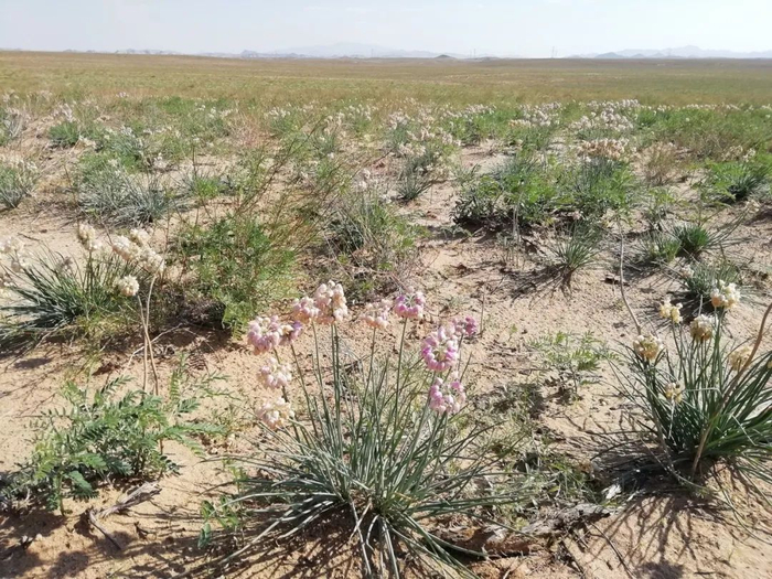 据《中国植物志》记载,沙葱也叫蒙古韭,是百合科葱属植物。多生长在海拔 800~2800 米的荒漠、砂地或干旱山坡。在我国新疆(东北部)、青海(北部)、甘肃、宁夏(北部)、陕西(北部)、内蒙古和辽宁(西部)均有生长。