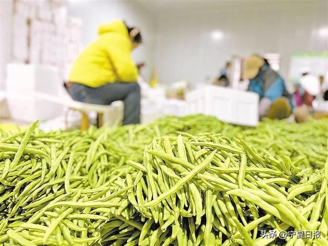 宁夏锦瑞合源电子商务有限公司的冷链包装车间里,工人在挑拣豆角。通关——后24小时的一路绿灯