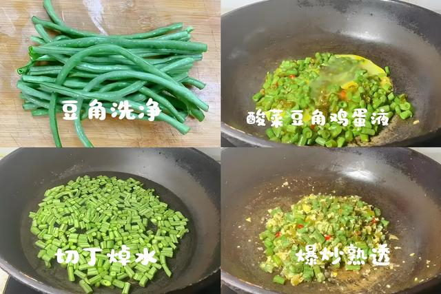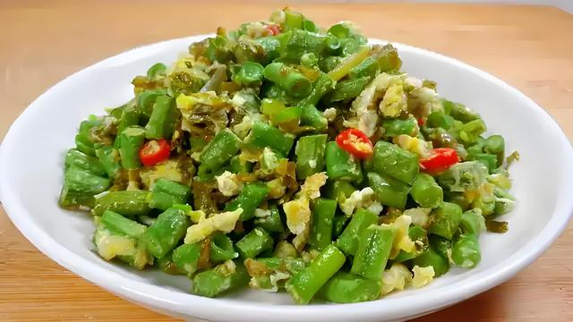 4、加入切碎的酸菜,翻炒均匀,让酸菜的咸香渗入豆角。最后倒入炒好的鸡蛋碎,加少许盐(注意酸菜已有咸度)翻炒匀即可出锅。那酸菜的咸鲜裹着豆角的清甜,配上鸡蛋的滑嫩,光闻着味儿就让人直咽口水!