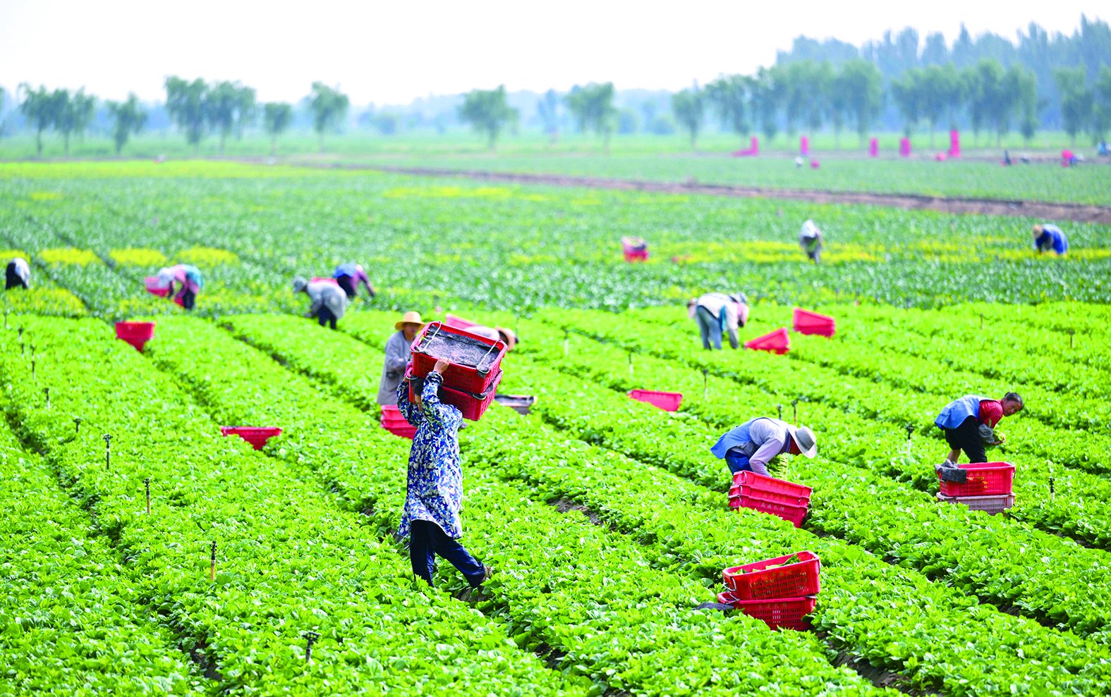 图为7月1日菜农在供港蔬菜基地采摘蔬菜。