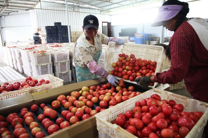“今年一月份移栽的70亩西红柿,如今已全部成熟上市,亩产量在1万至1.2万斤左右,预计总产量能达到400吨左右,销售价格每斤在2.3至2.5元。30亩螺丝椒更是给力,采收期能持续到年底,亩产量在1.5至1.8万斤左右,每斤能卖到3.5元。”贵州鲜之源农业开发有限公司负责人易丽介绍说,基地采用无公害生态栽培模式,从选种到病虫害防治全程严格把控,确保产品品质。