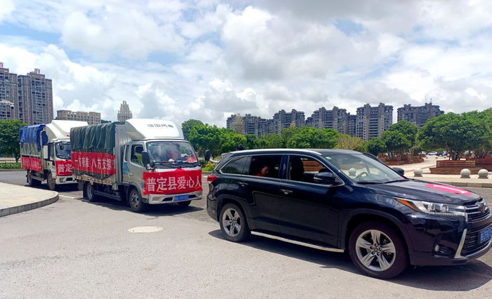 图为普定县支援榕江县灾后生活物资。普定县餐饮商会会长汪雪说,希望通过这次行动带动更多的人关心榕江,关注榕江;希望受灾的群众和救援人员能吃上新鲜的蔬菜,感受来自普定餐饮界的温暖。