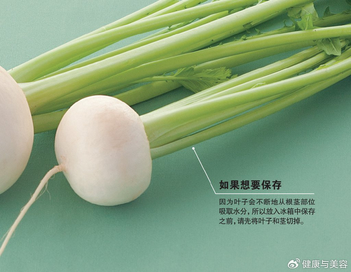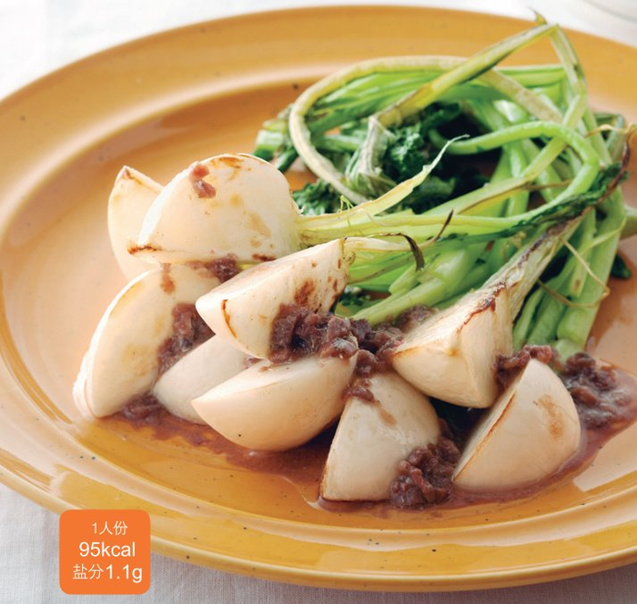 芜菁的茎叶部分富含美肌成分B胡萝卜素和维生素E以及钙质所以也请一起食用不要浪费掉这么多营养。这里介绍的芜菜谱,都包括了叶和茎的部分。为我们设计制作了这些菜式的成泽正胡女士说:“小煮一下的话,不会使维生素C过多流失,不同品种的芜菁在烹饪时需要掌握不同的火候,在煮的时候要不时地用筷子等扎扎看是否已经煮好。”