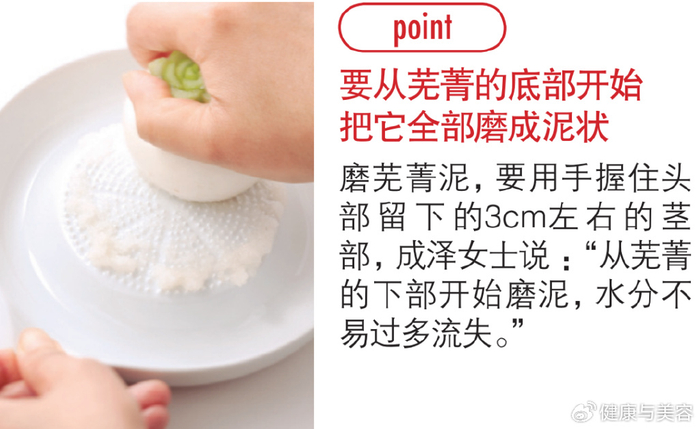 生吃时要把芜菁切细,磨成泥食用,这是提高芜菁解毒能力和提升人体免疫力的关键,还有就是用盐和醋一起,轻轻腌制一下再食用,效果也不错。宇田教授建议说:“加点盐和醋以后,更有易于激发酵素的活力,也可以促生更多的硫氰酸盐。”