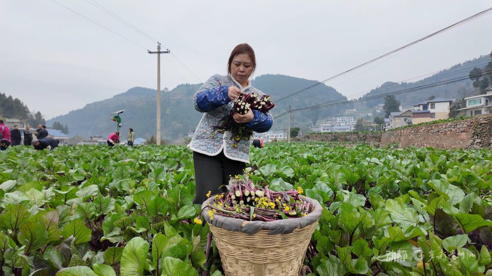在红菜苔种植领域,贵州毕节和仁怀同样交出亮眼“成绩单”。黔西市雨朵镇扯泥社区通过“合作社+农户”模式,发展红菜苔规模化种植,今年种植面积达1000亩,亩均收入3000多元。社区与多家批发商建立长期合作关系,新鲜的红菜苔从收购点源源不断发往贵阳、毕节等周边城市市场。