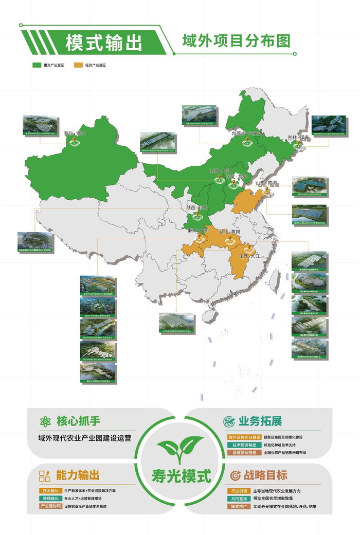 寿光农业控股集团积极将成熟的“寿光模式”向全国推广。其中,在山西大同天镇县,集团投资14.37亿元建设占地5000亩的现代高科技农业科技产业示范园,并采用“国有企业建设+专业团队运营+农户(合作社)”的模式运作。项目全面投产后,预计每年可培育种苗3亿株,生产五彩椒6000万斤、口感西红柿1600万斤。此类项目正是集团全国布局的重要一环。目前,集团已在河北雄安、新疆博乐、内蒙古兴安盟、吉林珲春等九个省市合作共建了高标准农业示范园区,总面积达3.5万余亩。